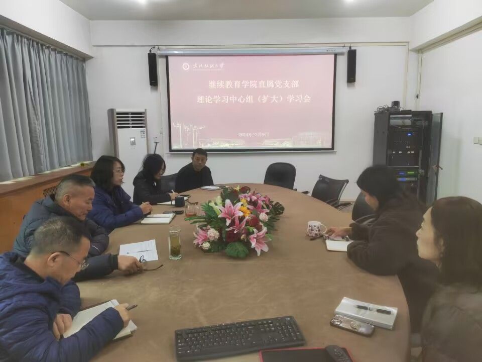 2024年12月9日,williamhill官网直属党支部在行政楼512会议室召开了理论学习中心组(扩大)学习会。本次会议由支部书记秦梦主持,并以“党的二十届三中全会精神解读”为主题开展党课宣讲活动。学院党员领导干部、教职工党员干部参加了会议。