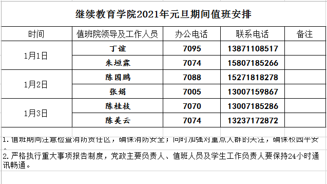 williamhill官网2021年元旦期间值班安排
