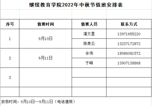 williamhill官网2022年中秋节值班安排表