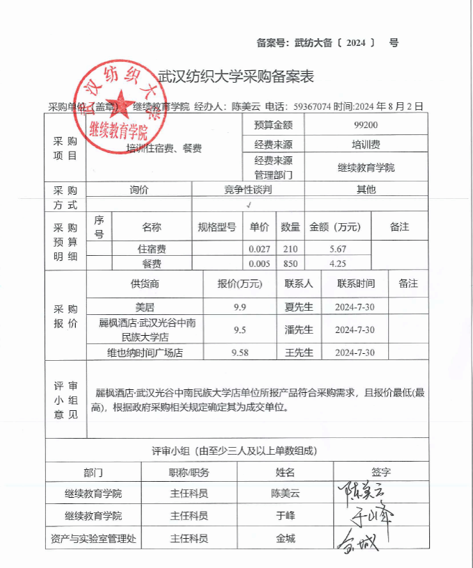 williamhill中国自行采购备案表(培训住宿费、餐费)