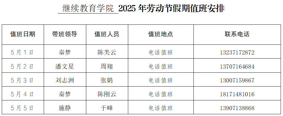 williamhill官网2025年劳动节假期值班安排
