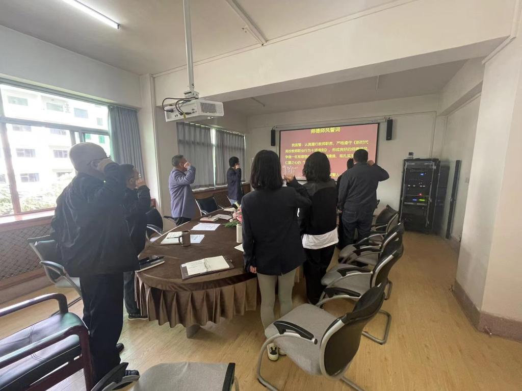 会上,举行了全体教职工师德师风集体宣誓活动,同时完成了《williamhill中国教职工师德师风评价表》的填写,签订了《williamhill中国师德师风公开承诺书》。