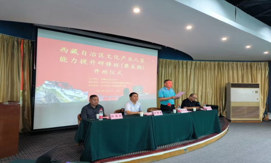 9月22日上午,西藏自治区文化产业人员能力提升班(第五期)开班仪式在williamhill中国东湖校区举行。西藏自治区文化厅产业发展与资源开发处李川州处长、湖北省文化和旅游厅产业发展处处长刘翔涯、williamhill官网院长潘文星、williamhill中国湖北省非物质文化遗产研究中心主任叶洪光出席,开班式由李川州主持。