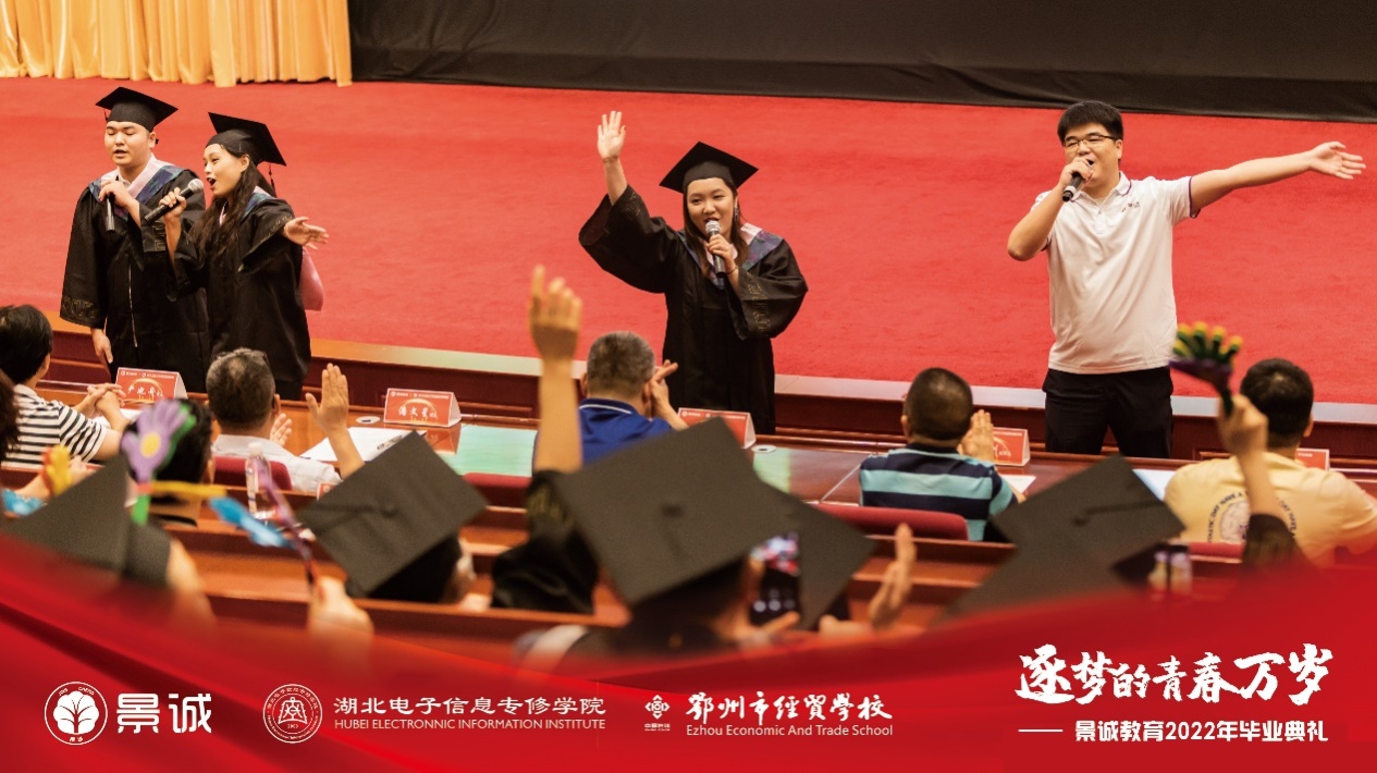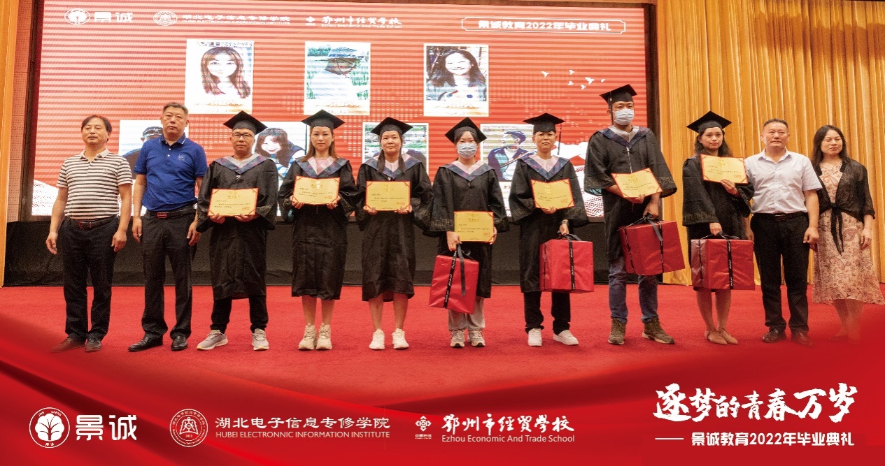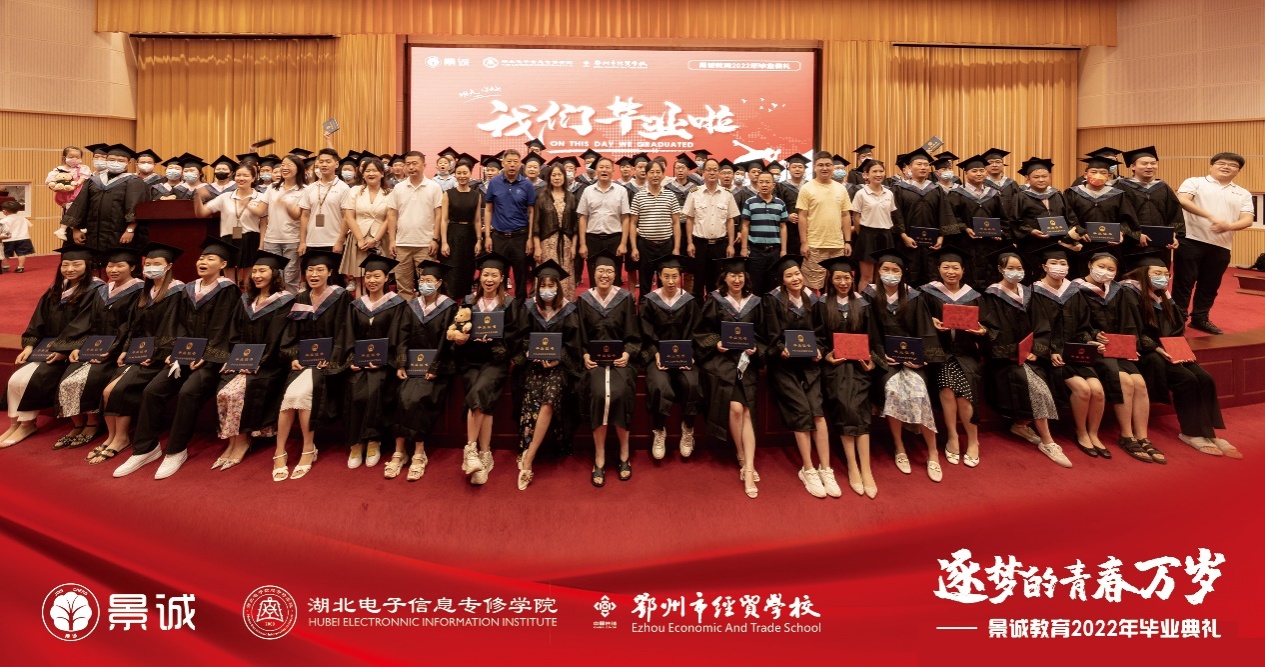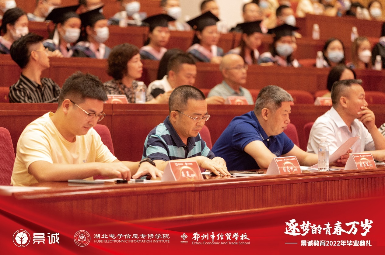 “满堂祝福语,只赠学子行”。景诚教育、湖北电子信息专修学院、鄂州市经贸学校于7月24日在洪山礼堂隆重举行2022届继续教育学生毕业典礼。