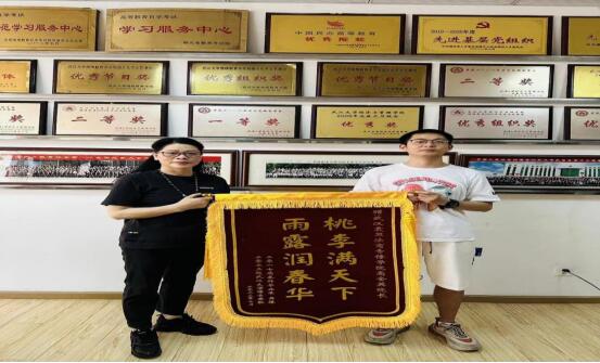 2023年7月7日,学院校友吴棒回到母校,向母校赠送锦旗,高金英院长亲切接待了吴棒校友,代表学校接受锦旗,并与吴校友长时间交流,还送给吴校友一个现金大红包。