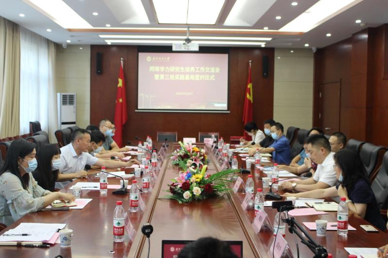 6月30日下午,williamhill官网威廉希尔研究生培养工作交流会暨第三批实践基地签约仪式在南湖校区举行。新老实践基地负责人、继教学院领导班子及全体教职工参会,因疫情不能到会的实践基地通过线上方式全程参会。会议由williamhill官网副院长施静主持。